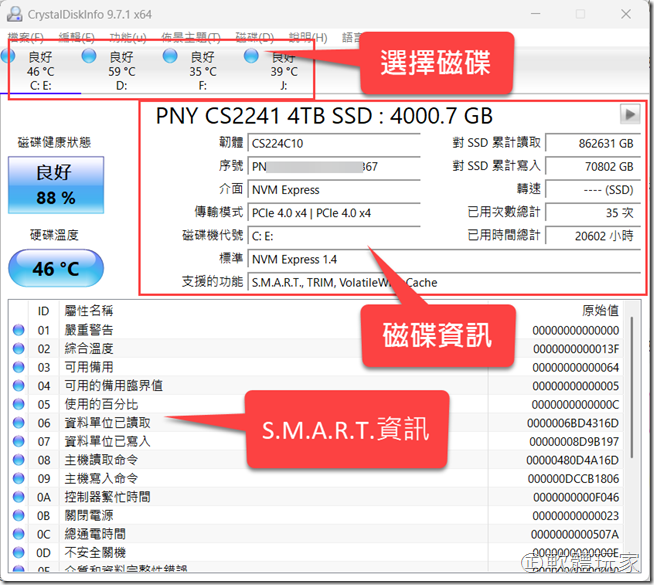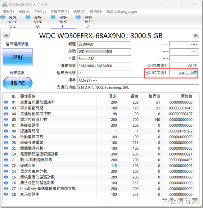 老牌又好用的免費硬碟/SSD資訊工具《Crystal DiskInfo》